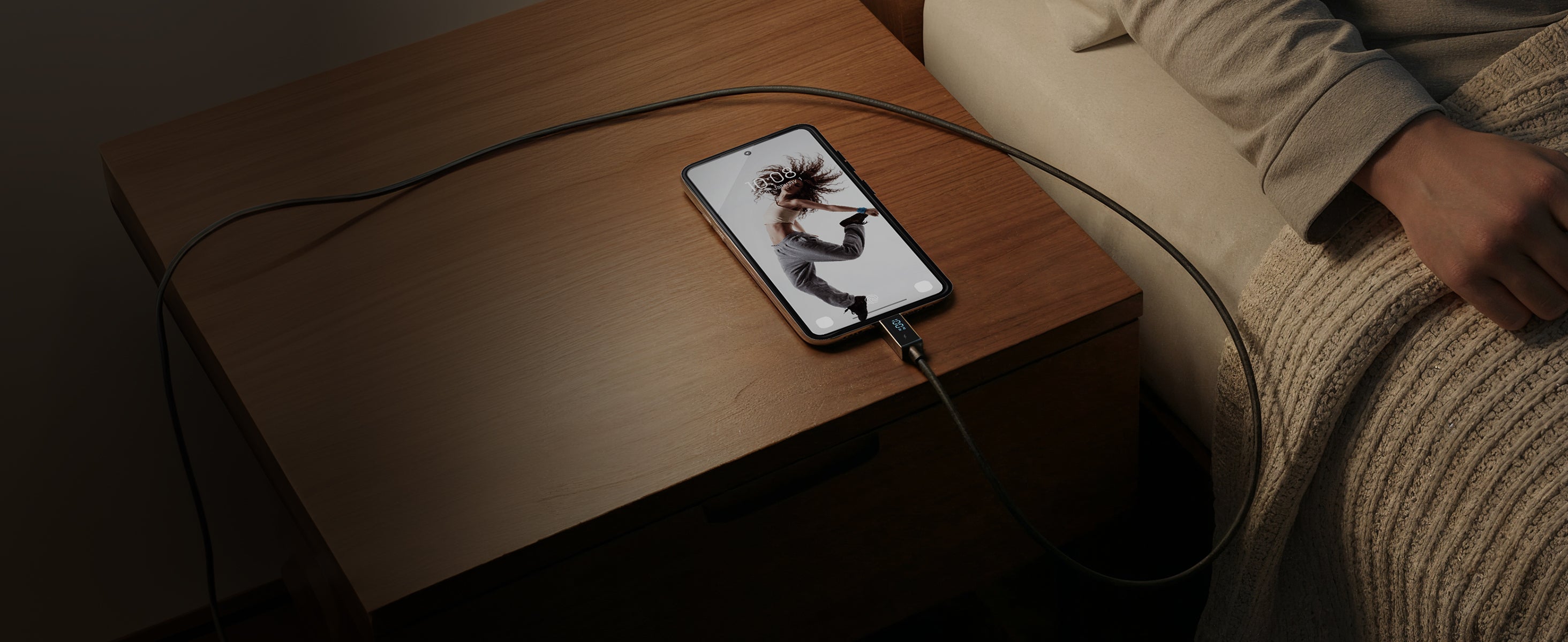 Self-Organizing 100W PD Nylon-Braided USB-C Cable with LED Display, 480Mbps Transfer, Smart E-Marker Chip, Premium Zinc Build