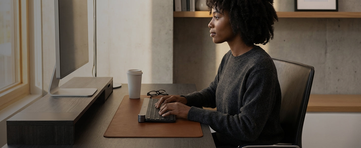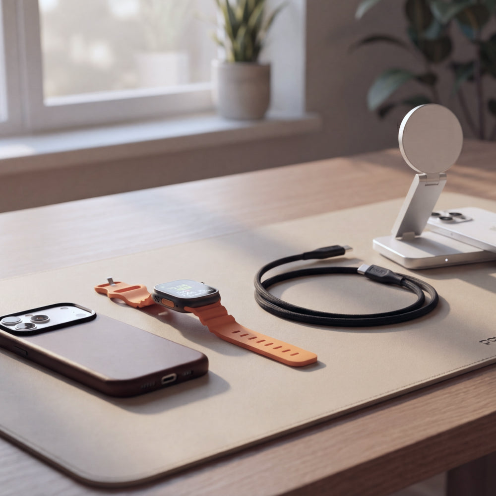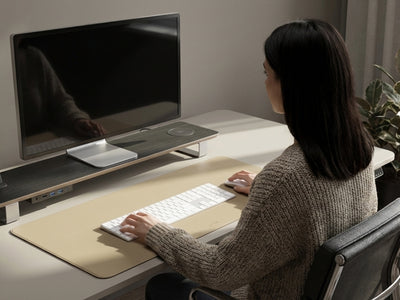 Vegan leather desk mat with waterproof surface, non-slip base, and refined design. Built for work and style.
